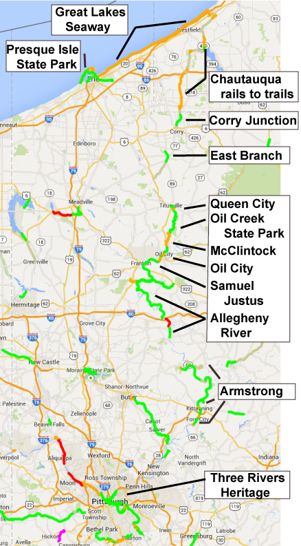 Oil City Trail -Tour the streets of historic Oil city as you connect from the Samuel Justus Trail to the Oil Creek Trail